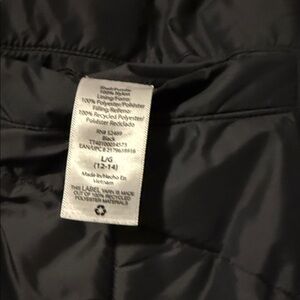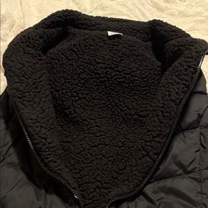 Stylish quilted vest. Full zip front. Sleeveless design. Perfect for layering. Fleece lining. Can be worn as reversible if size tag is removed. Front pockets inside and out. Length is approximately 26” from top of shoulder to hem.