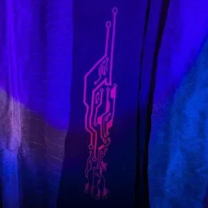 Rare in excellent condition! Panel skirt with front and back circuit design in red (UV/blacklight sensitive), zipper at waist, Cyberdog logo on the back. Waist 16" flat, front panel 34.5" long, back panel ~39.5" long.