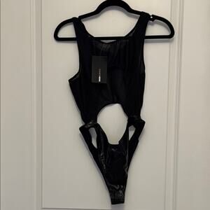 Fashion Nova Black One Piece with Deep V-Neck and High-Cut Legs