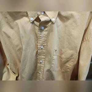 Tommy Hilfiger Mens 80s 2 Ply Fabric Gold Plaid Long Sleeve Button Up Shirt XL