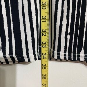 This elegant black and white sheath dress is designed for a sophisticated cocktail night out. It features a striking geometric pattern, beautiful Zipper in the back, and a comfortable crew neck, with long sleeves enhancing its refined style. The dress's sleek silhouette ensures a flattering fit, making it a standout choice for any occasion. Never worn, the protective plastic is still on the zipper.