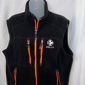 RLX Ralph Lauren Mens Fleece Vest Black Orange Size Medium Soft