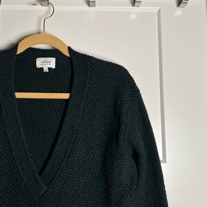 Chic V-neck sweater in forest green. Ideal for layering or standalone wear. Elevate your wardrobe with this versatile piece. Deep v neck and long cozy sweater with a beautiful thick knit design for ultimate cozy wear. Great quality like all of the Aritzia Wilfred pieces. Size small fits oversized. Purchased in 2014.