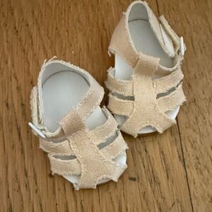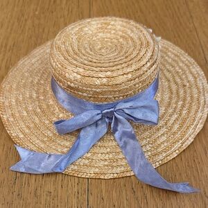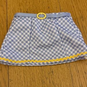 Adorable American Girl outfit. Includes blue gingham skirt and matching top. Straw hat with blue ribbon. Cream shoes complete the look. Box included! Never put on the doll. Excellent condition!
