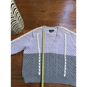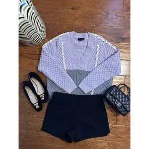 Great condition. The Club Monaco Purple Violet Lavender Color Block Sweater Pullover in Size M is a stylish and versatile sweater perfect for various occasions. Made from 87% wool and featuring a V-neck design with long sleeves, this sweater is comfortable and chic. The violet color adds a pop of color to your outfit, making it a perfect choice for parties, casual wear, or business events. With its regular fit and pullover style, this sweater is a must-have for your winter, fall, or spring wardrobe.