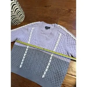 Club Monaco Purple Violet Lavender Color Block Sweater Pullover Size M 87% Wool