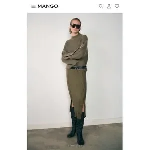 MNG Buttons Detail Knit Sweater Olive Green Khaki SIZE L