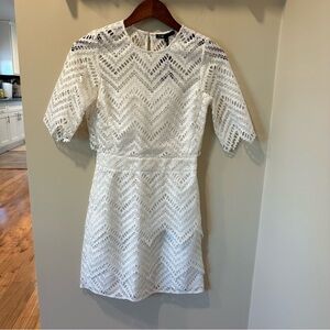 Maje Rosalba Chevron Dentelle Lace Dress Blanc