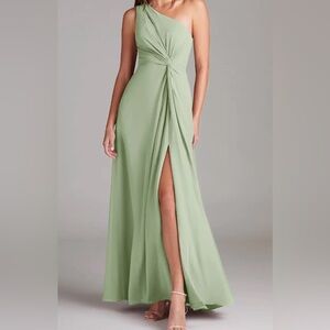 Chic one-shoulder design. Flattering draped detail. Ideal for formal events.