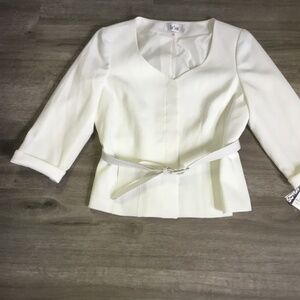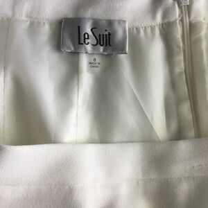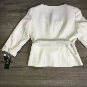 LE SUIT Winter White two piece belted suit jacket and midi skirt suit size 8 NWT