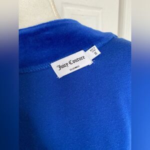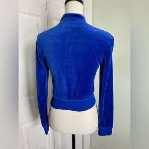 Transport yourself back to the late 90s & Y2K era with this deep blue velvet jacket! As we know, icons of the time,e such as Paris Hilton, wore mostly her famous pink Juicy Couture tracksuits. This piece is a slightly newer Juicy Couture piece but the spirit is still the same.