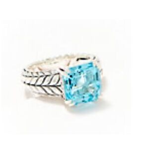 JAI Sterling Silver Asscher Cut Sky Blue Topaz Gemstone Ring, NWOT, sz 5