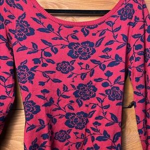 modcloth x Colectif Women’s sweater Med Deep V Neck scoop back Red Blue Floral