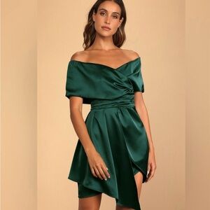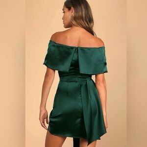 Chic asymmetrical dress in deep teal. Features a wrap design and elegant draping. Perfect for stylish occasions.