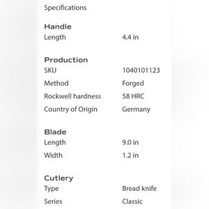Classic 9" Precision Double-Serrated Bread Knife,Color Black, Retail $150.00 USD