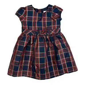 Wonder Nation Girl's Blue Silver and Red Plaid Fancy Holiday Dress -