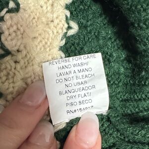 Stay cozy and stylish with this green and cream striped sweater. Perfect for any casual outing.
