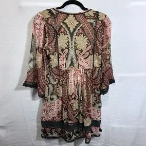 Anthropologie Ranna Gill Joss Kimono Dress Mini Paisley Boho Festival Size 4