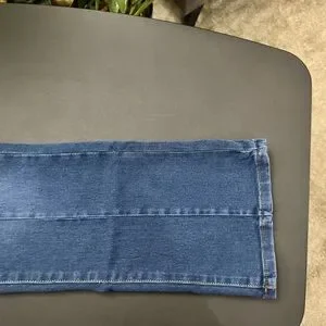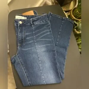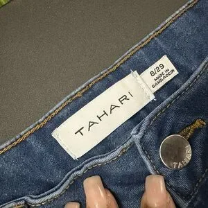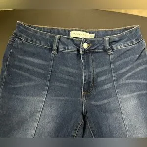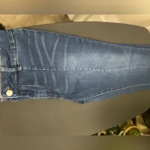 Stylish Women’s high rise boot cut jeans by Tahari. Medium Dark blue denim with classic stitching down front of legs. Perfect for versatile wear. Size 8.