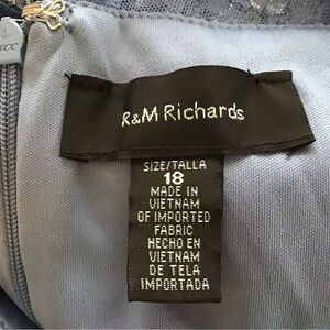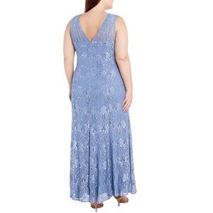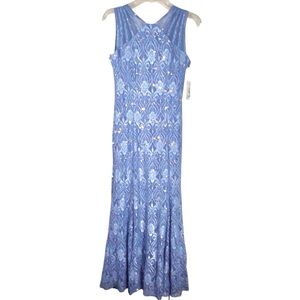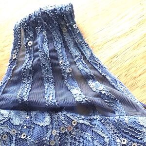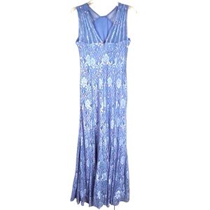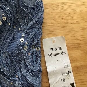 R And M Richards Blue Sequined Lace Gown with Sheer Inserts Size 18