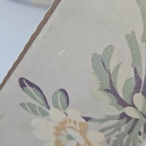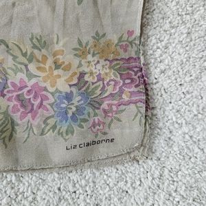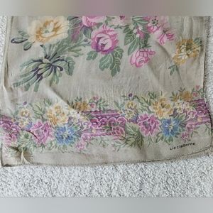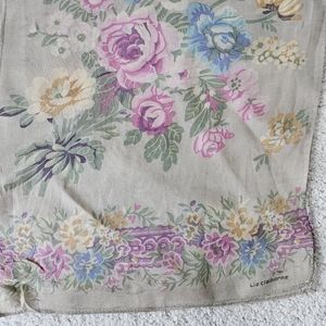 LIZ CLAIBORNE Oblong Floral Spray Scarf | SZ 51" - Pretty floral sprays in a bright pastel color palette with a Floral border design on each end; light gray or taupe background. very good condition- a few small spots of wear (see photos).