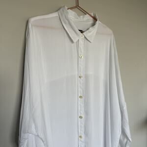 Lands End Womens Top L/XL White Sheer Button Down Roll Tab Sleeve Coastal Travel