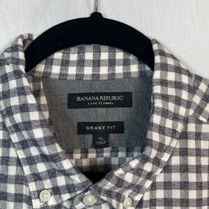 Banana Republic Luxe Flannel Grant Fit Black and White Checkered Shirt Sz XL