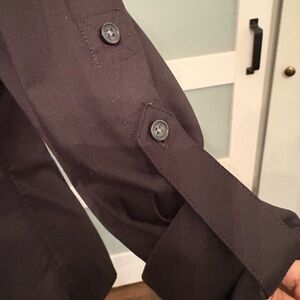 Classic goes Chic! A black button down with stylish rose gold embellishments. Add some flare to your tailored, professional look. Can be worn as a long sleeve or 3/4 sleeve. Shirt is NWT and has not been worn, but for transparency, square embellishments show some fading that is not obviously noticeable. Smoke free, pet free home.