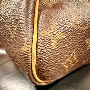 Flaws: shows signs of use, vachetta shows watermarks and shows wrinkling/creasing/scuffs/rubs/ dirt but not deep, hardware shows some tarnishing but can be cleaned, interior shows some spots/marks but clean overall no major stains.