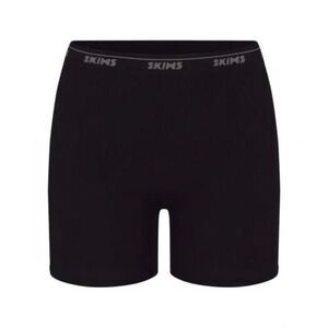 -Description: This soft, stretchy boxer short has a mid-rise fit and flattering ruching at the center back to define your butt. Features a stretchy waistband with SKIMS logo details, maximum coverage, and a cotton gusset. Fits true to size. Mid Rise Boxer Short, Mid Rise Fit, Stretchy Waistband With Contrast Intarsia Logo, Ruching On Center Back For Butt Definition, Maximum Coverage, Cotton Gusset