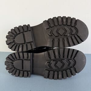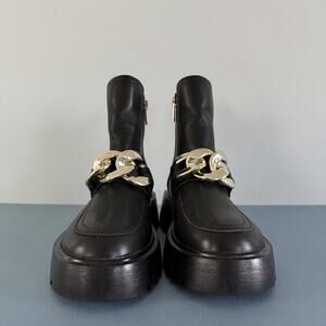 Steve Madden Cleo Black Leather Chunky Lug Sole Curb Chain Ankle Boots