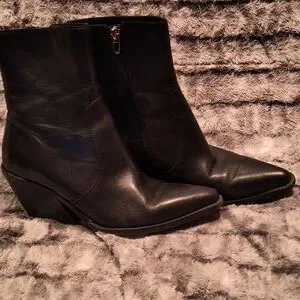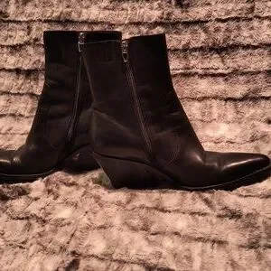 Sleek black ankle boots. Pointed toe design. Side zipper closure. Perfect for any occasion. Super cute, I just need a half size bigger unfortunately!