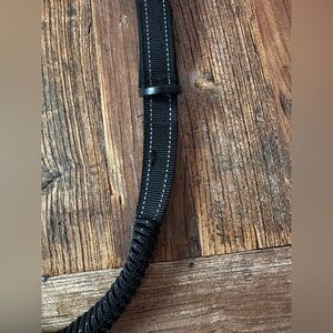 Ensure your dog's safety with this durable black leash featuring reflective stitching. Perfect for evening walks.