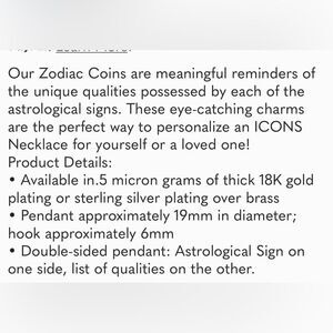 Melinda Maria Aquarius astrology necklace. description in the photos, gold, never been worn and new with tag. I do not have the box. I also have Sagittarius as well.NWT