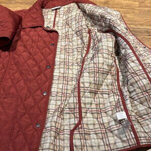 Elegant quilted design. Thin and warm. Perfect for chilly days. Button down-slight scratches on the button fronts. Large front pockets.