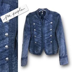 Free People Washed Cord Velvet Band Military Jacket In Washed Blue Size S