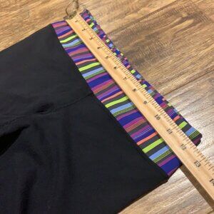 Fun pair of Lululemon full length leggings with neon stripes and ruffle details. Excellent gently used condition. So please go by actual measurements instead.