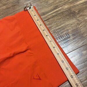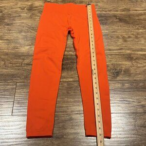 Gymshark orange full length leggings. Great gently used condition with minor wear showing…very minor piling and small pull on waist. Reflected in price. No size tag so please see measurements. Seems to measure like a small.