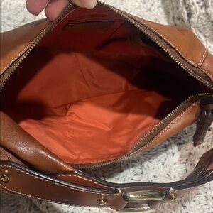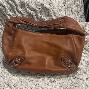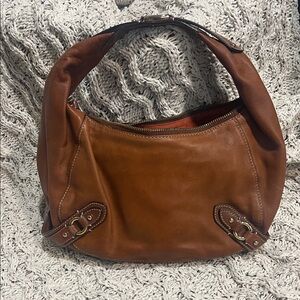 Elegant brown leather hobo bag with stylish buckle accents. Perfect for daily wear.