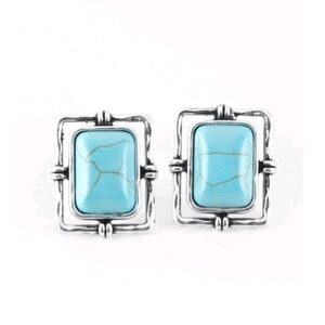 Paparazzi Jewelry "Center Stagecoach" Turquoise Silver Frame Earrings