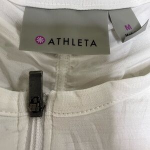 Athleta sleeveless zip-front performance top in classic white with a sleek, athletic fit. Lightweight stretch fabric makes it perfect for workouts, tennis, golf, or everyday athleisure.