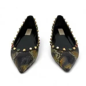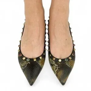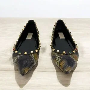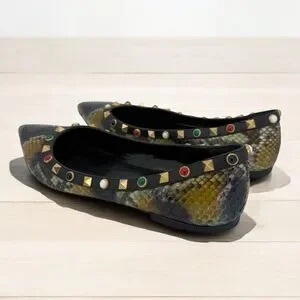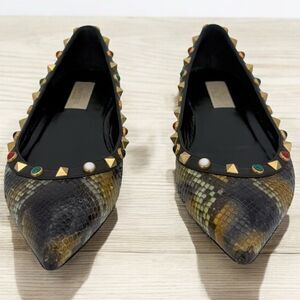VALENTINO Garavani Rockstud Snakeskin Ballet Flats Size IT37.5