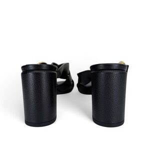 NEW LOUIS VUITTON LV Logo Black Leather Block Heel Sandals Mules IT36