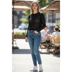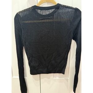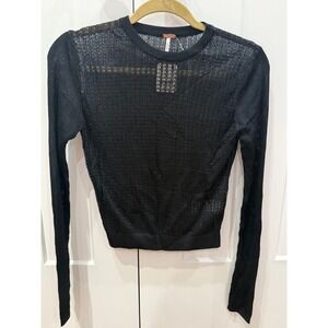 Free People Black Sheer Mesh Knit Cropped Long Sleeve Sweater Top S
