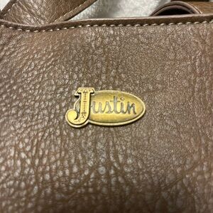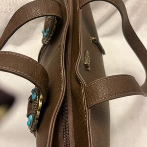 Justin Boots Brown Vegan Leather Tote with Turquoise Conchos