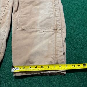 The Carhartt Quilt Lined Duck Bib 90s Vintage Insulated Overalls in size 38x28 are durable and high-quality coveralls designed for men in the construction industry. Made from cotton material and featuring a beige color, these overalls provide both comfort and protection for workers in colder weather conditions. With its quilt-lined insulation and United States origin, this vintage piece from Carhartt ensures both style and functionality for those looking for reliable workwear.