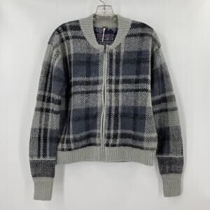 Free People Women Oh My Plaid Cardigan Bomber Jacket Sz L Wool Alpaca Gray Combo