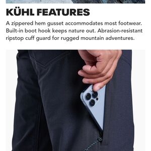 KUHL Men's Klash Gotham Black/Gray Hiking Pants Water Resistant Size 38X32