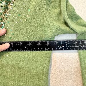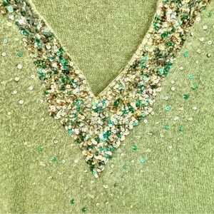 y2k sequin sweater medium, cashmere blend embellished top, green sparkle v-neck knit, glam souls medium sweater, boho luxe cashmere top, cottagecore green sweater, y2k winter aesthetic top, cashmere wool blend y2k knit