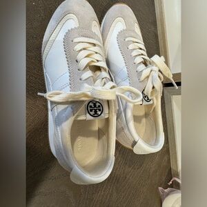 Tory Burch Hank Sneaker. Size 7.5 M. Snow White/Beige. Like New